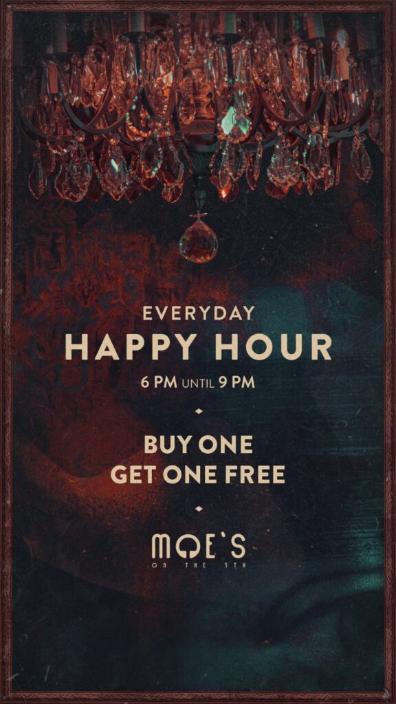 Long day? We got you! Start your evening right with the happiest hours. Buy one, get one on selected drinks. Daily, 6-9 PM.
